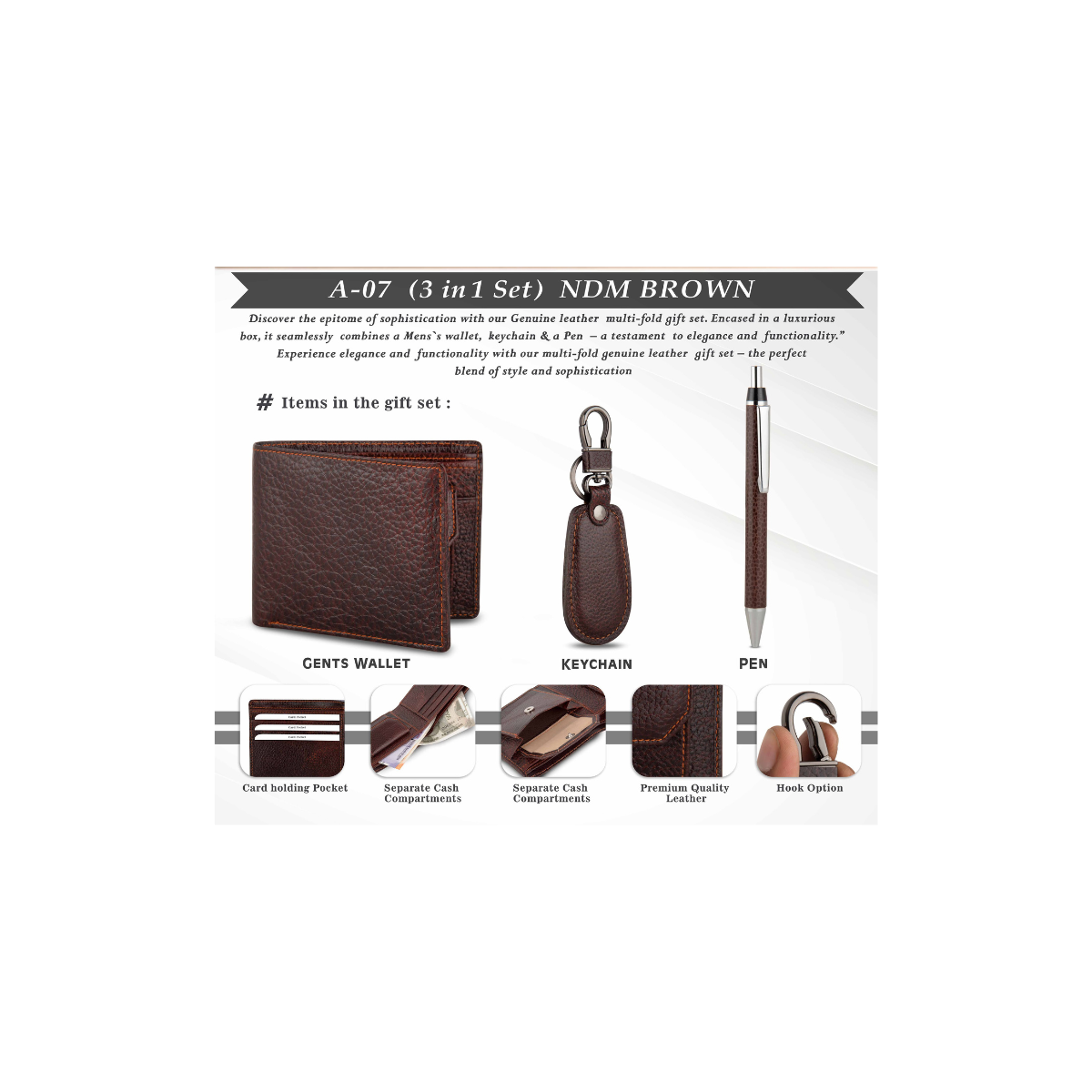 3-in-1 Faux Leather Gift Set – NDM Brown | Premium Men’s Wallet, Keychain & Pen Combo
