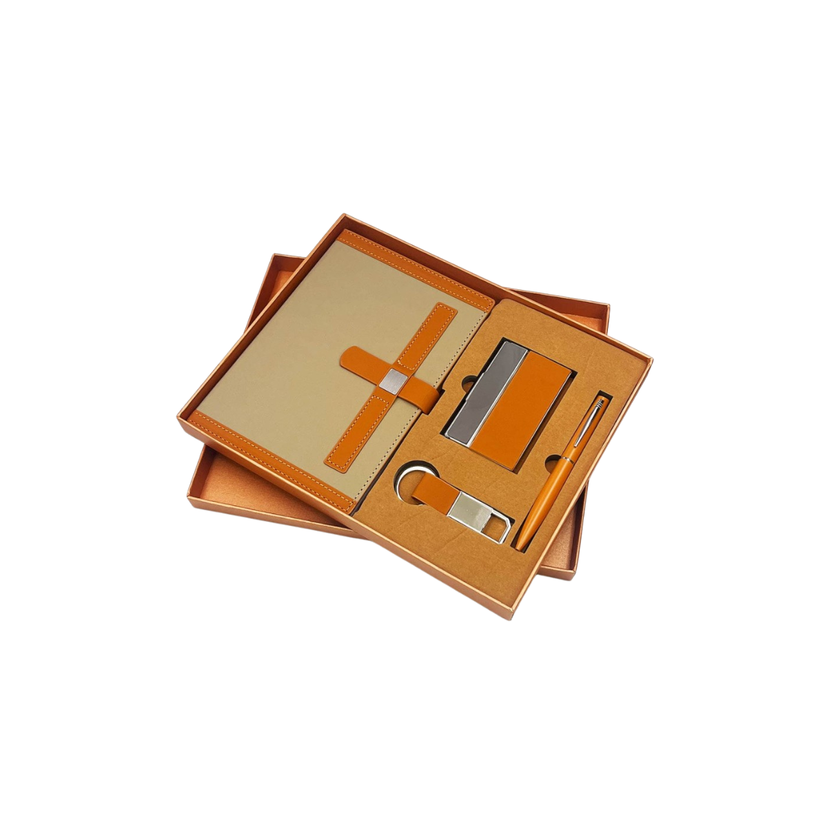 4-in-1 Premium Gift Set with Diary, Metal Pen, Keychain & Business Card Holder