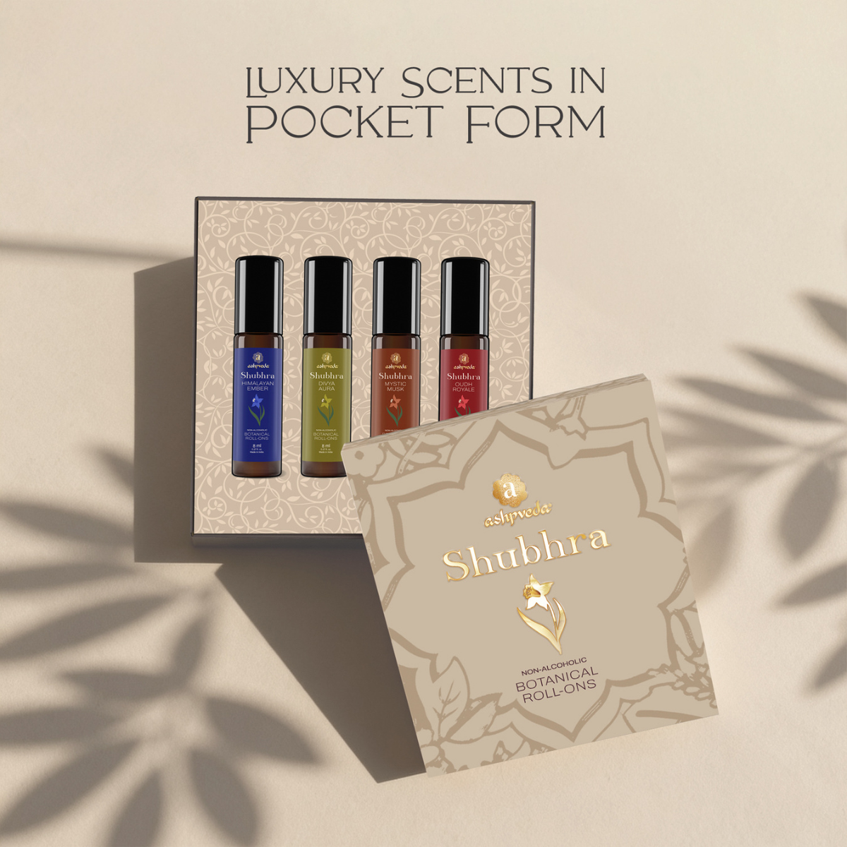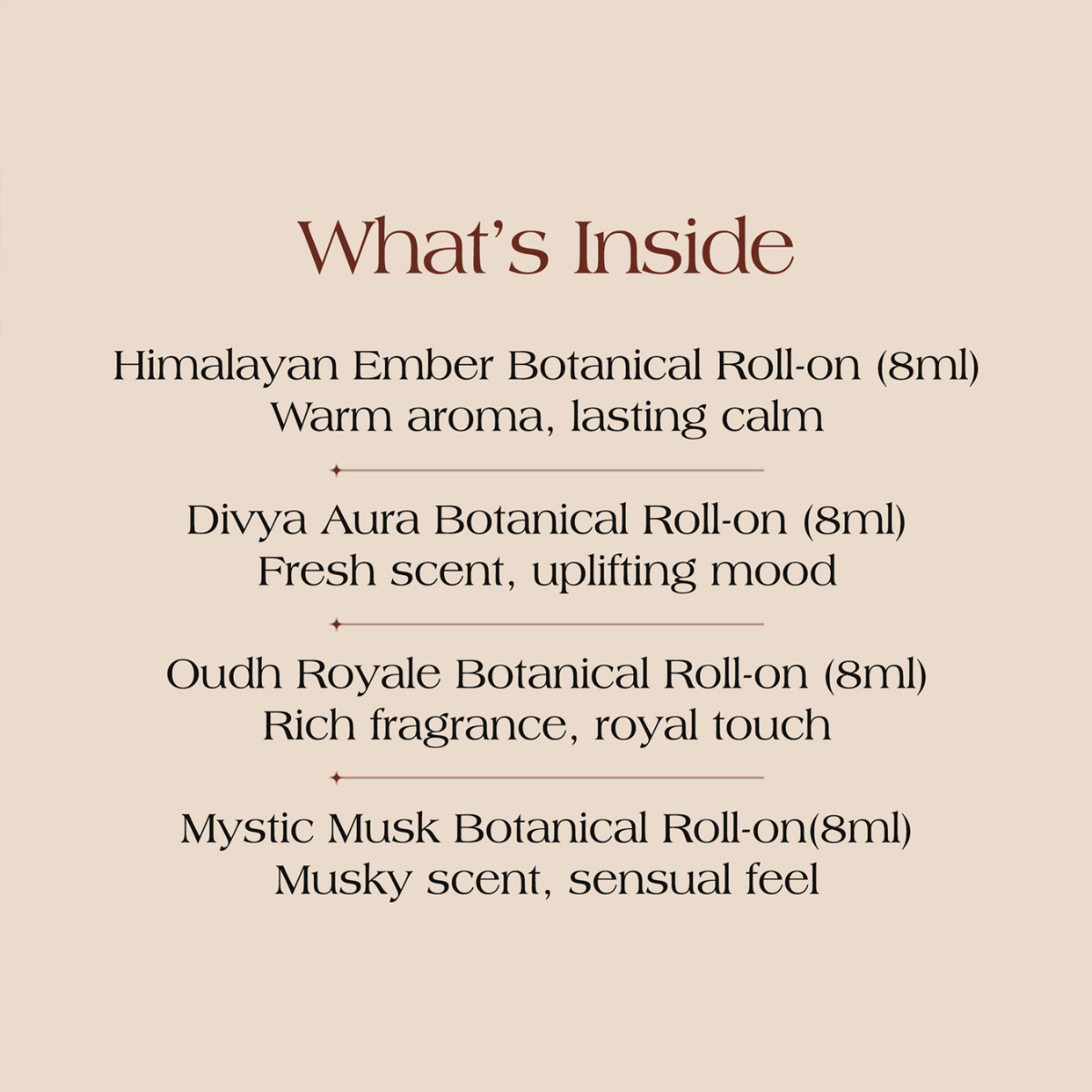 Aura Legacy Botanical Perfume Set – Himalayan Ember, Divya Aura, Oudh Royale, Mystic Musk