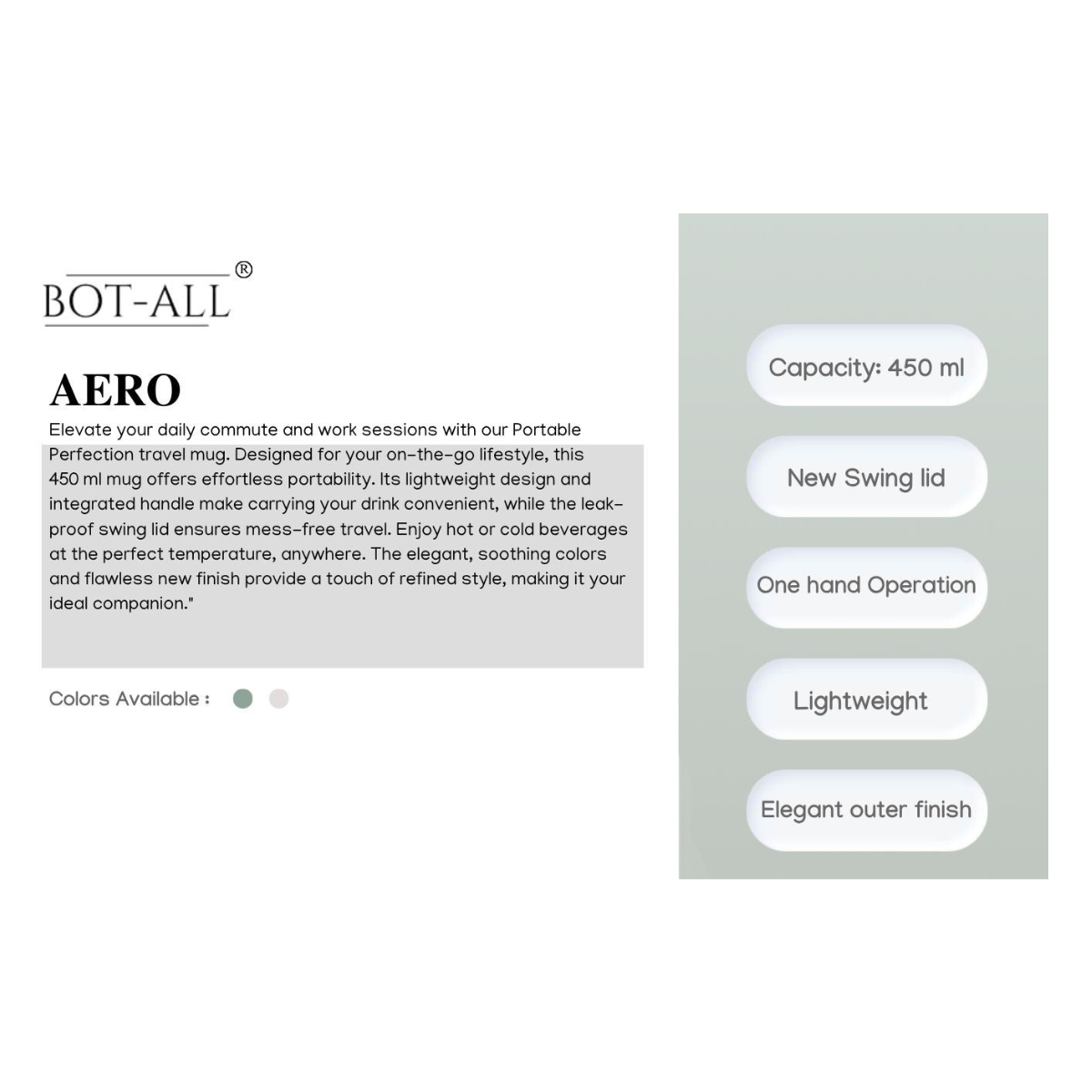 - Capacity: 450 ML
