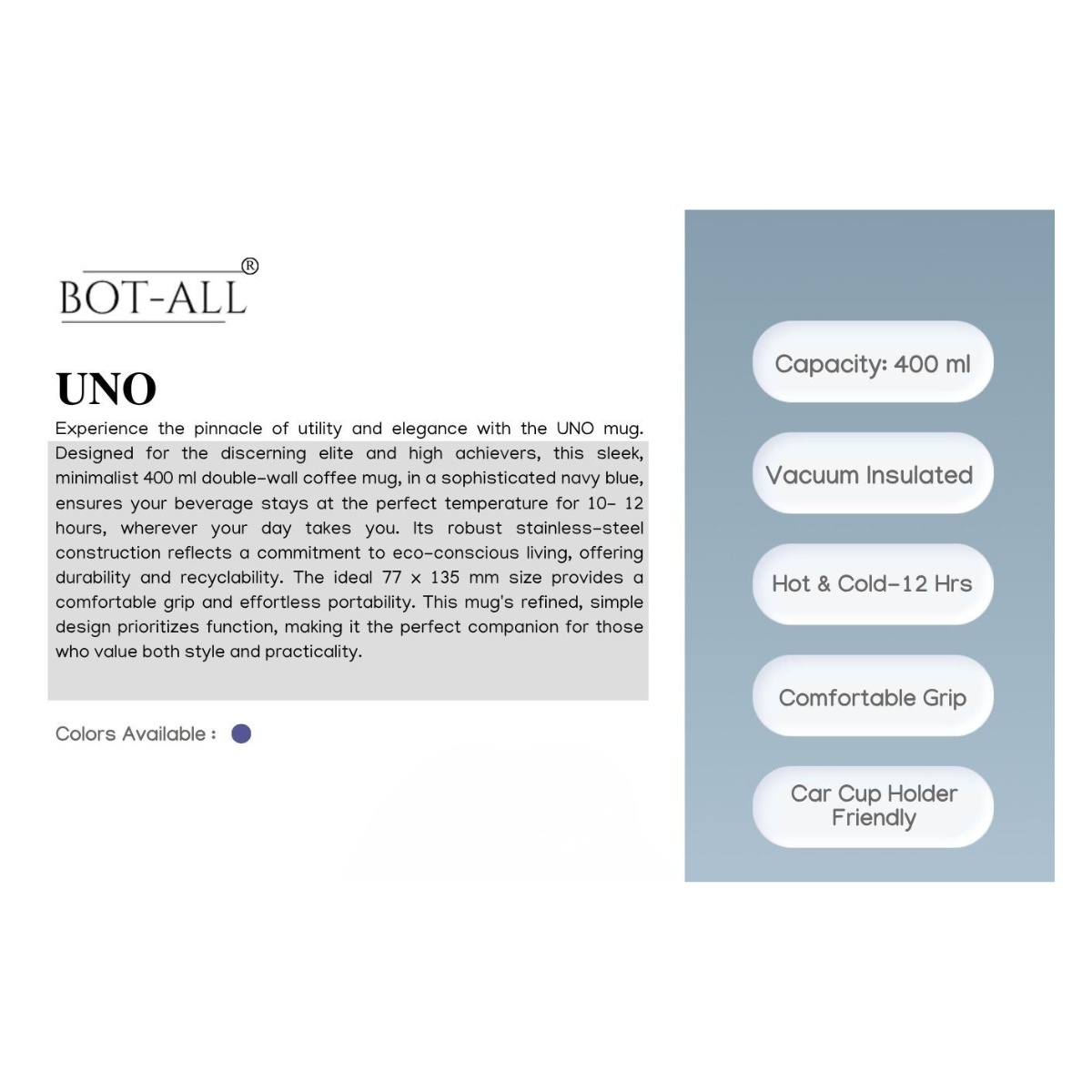 ✔ Capacity: 400 ml, ideal for everyday use