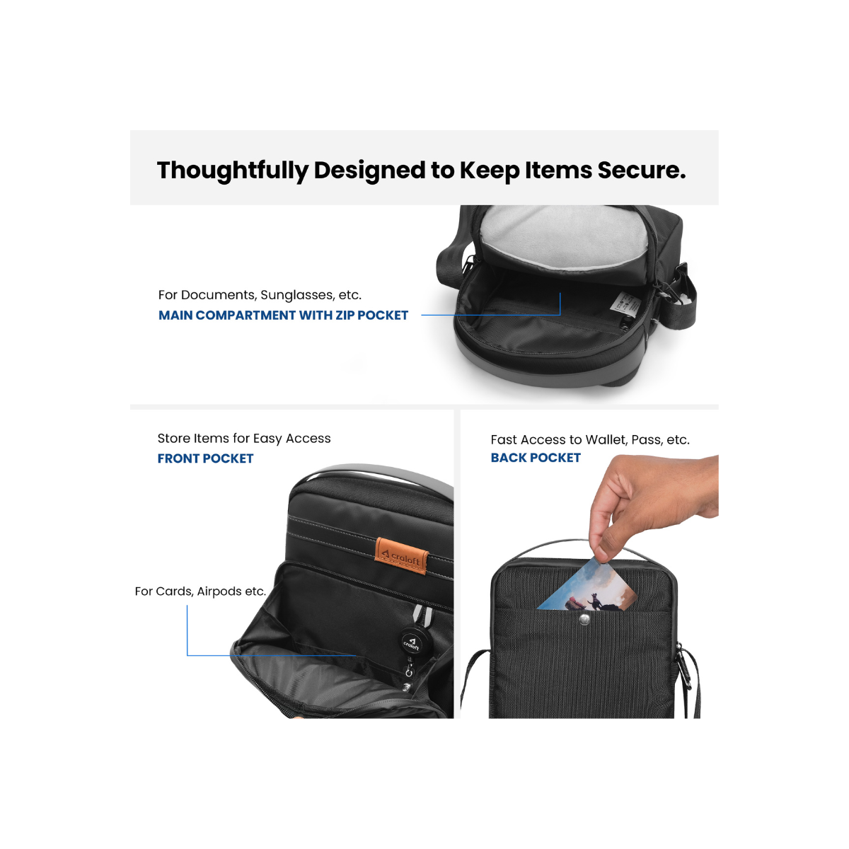 Ideal for: Men, women, daily commuters, travelers, casual outings, compact essentials, mobile carry, hands-free convenience, urban lifestyle, gifting purposes