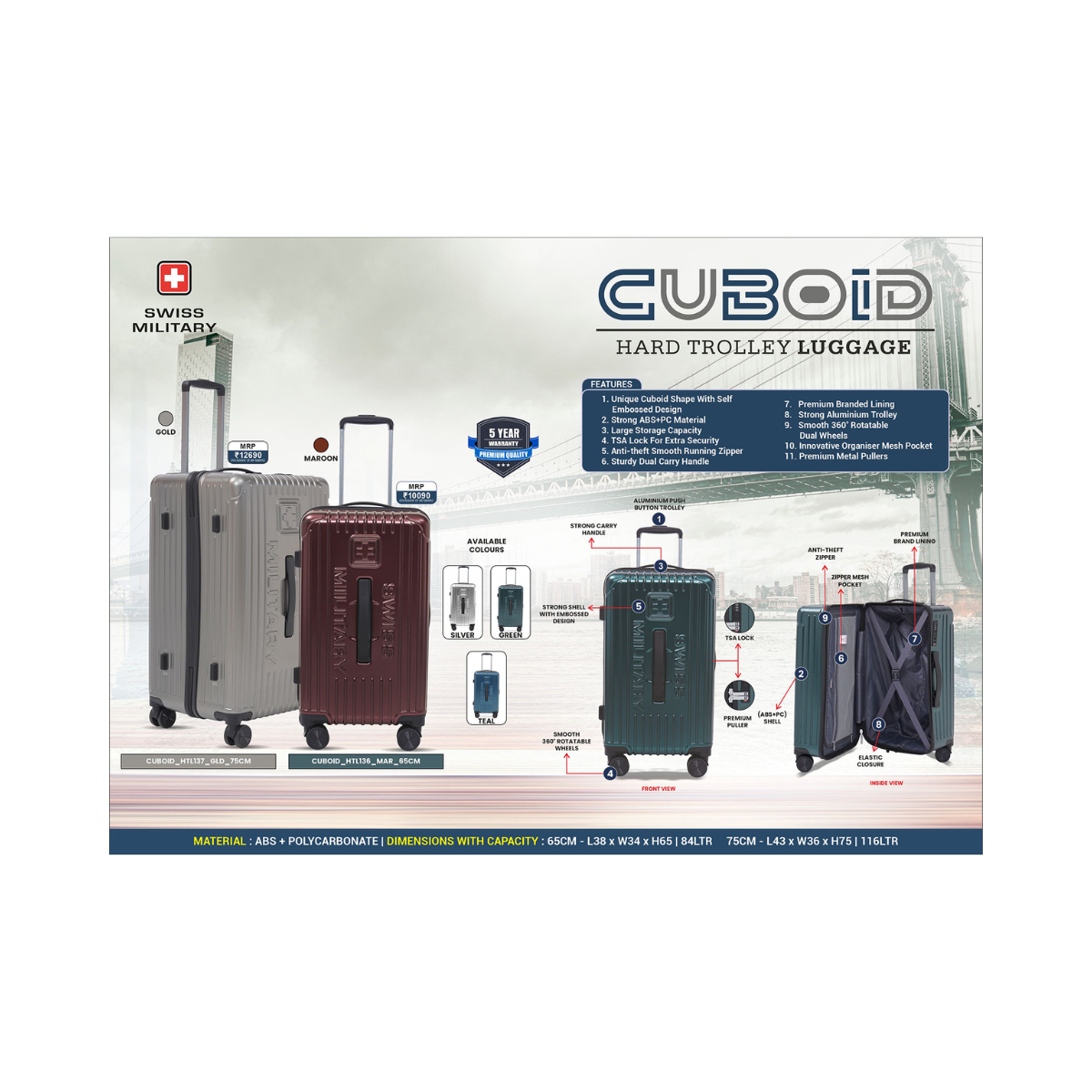 • Color: Green, Teal, Gold, Maroon, Silver