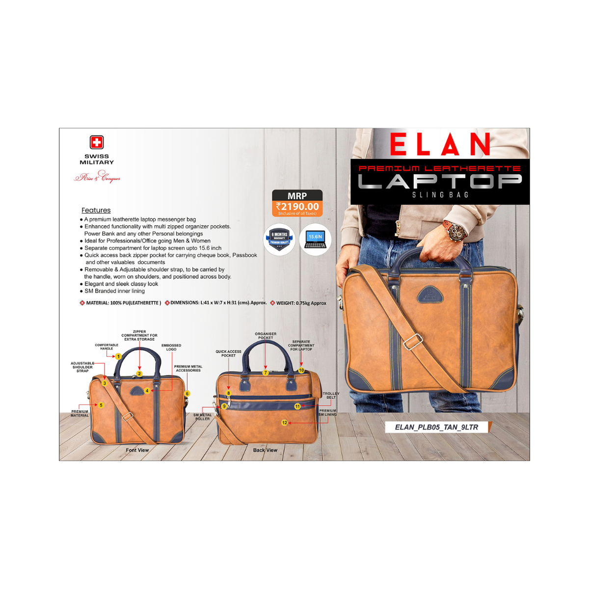 Elan 15.6” Leatherette Laptop Sling Bag – Premium Office Carry Case, Tan