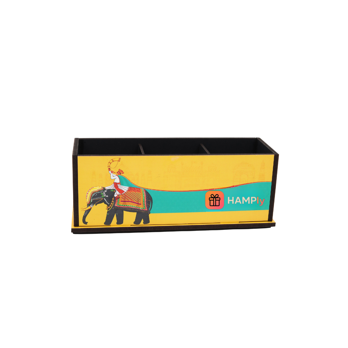 ✔ Design: Rectangular desk organizer with vibrant branding area