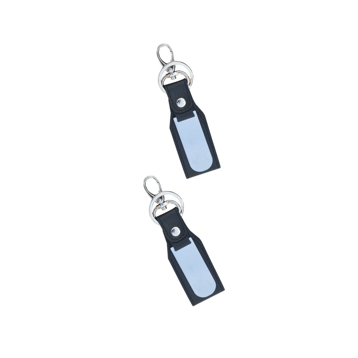 - Premium genuine leather key ring with sleek black finish.