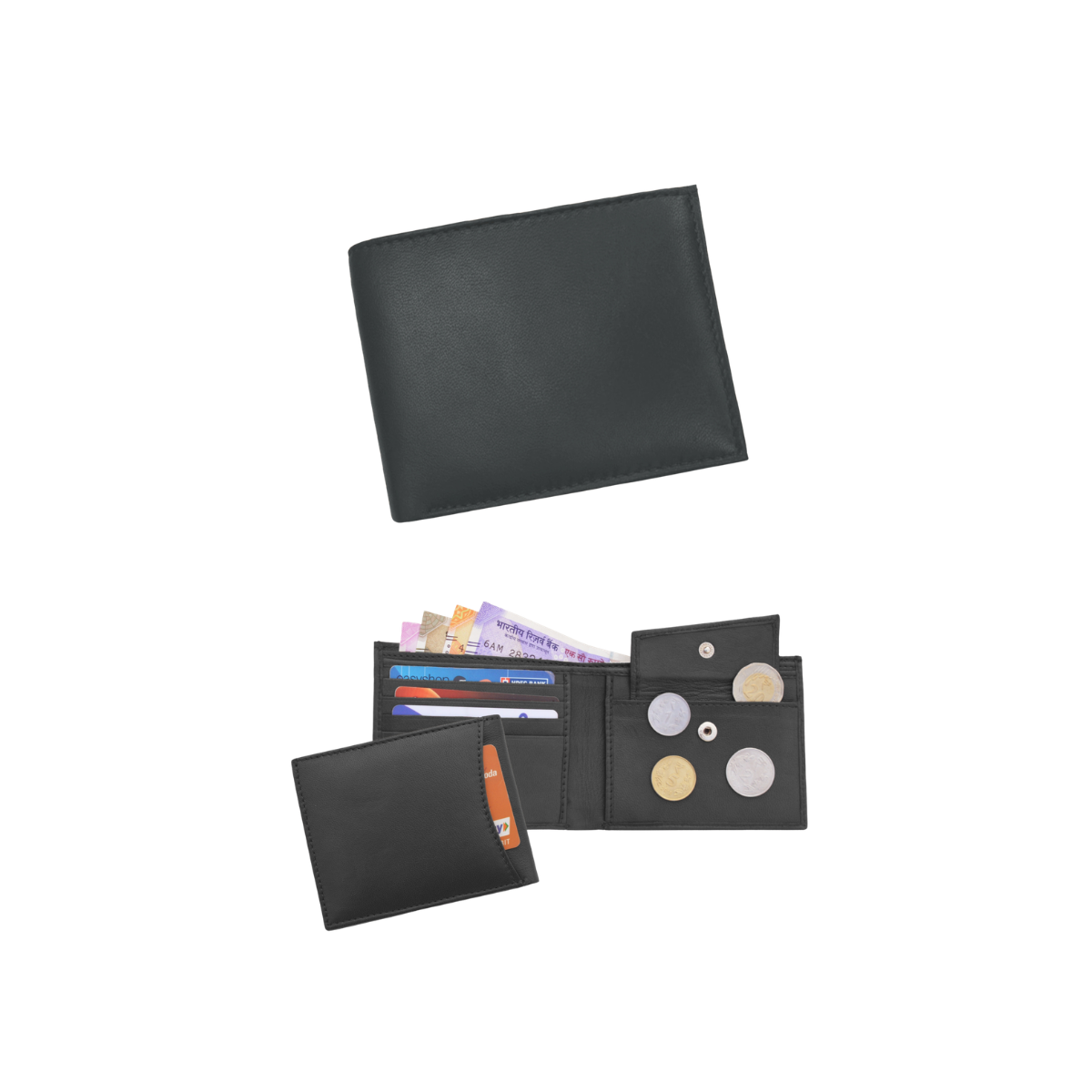 - Premium genuine leather men’s wallet with classic black finish.