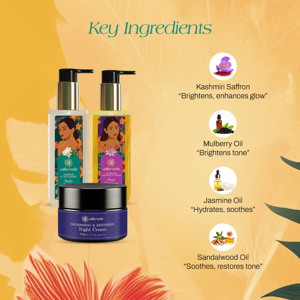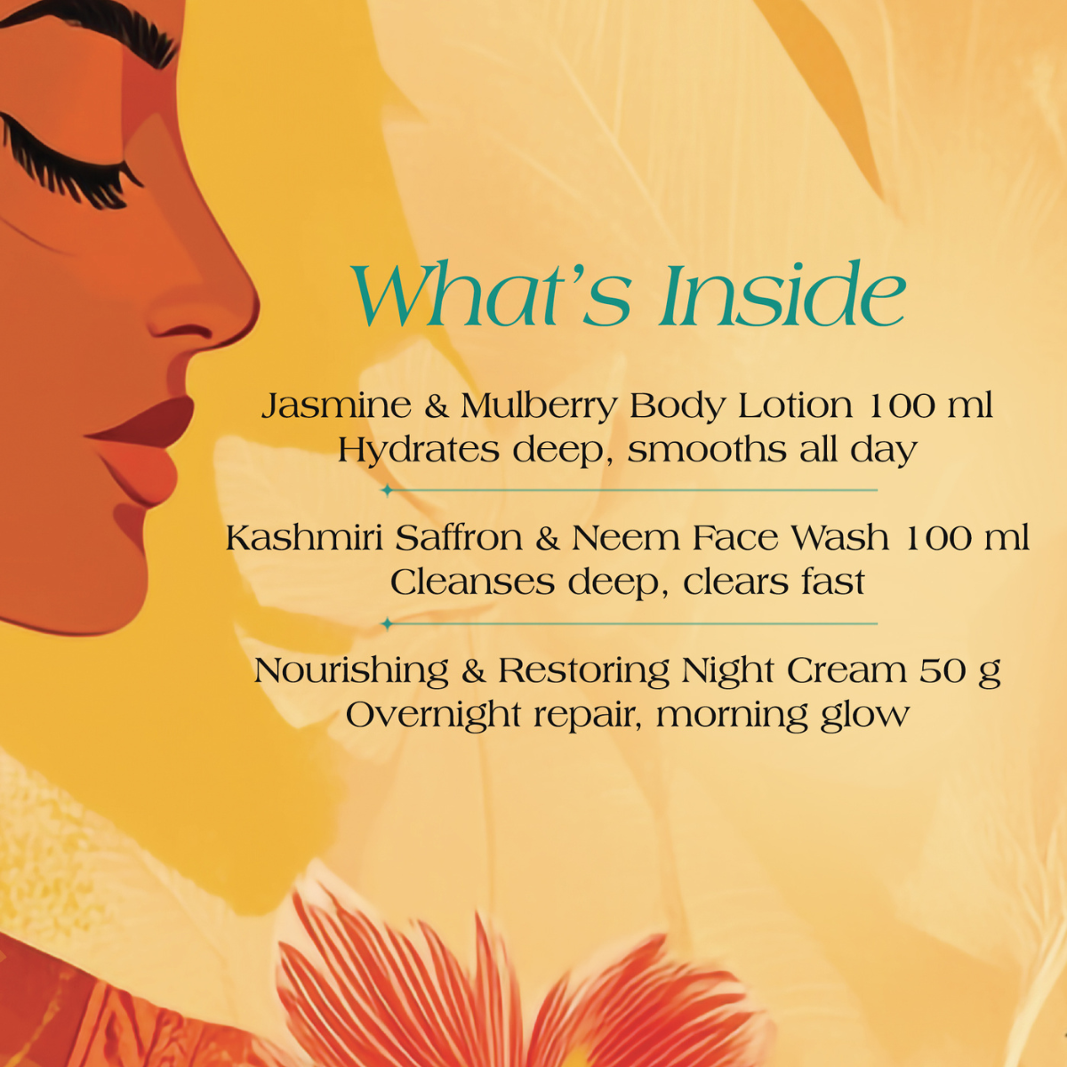 Nourishing Nights Care Kit – Body Lotion 100ml + Face Wash 100ml + Night Cream 50g