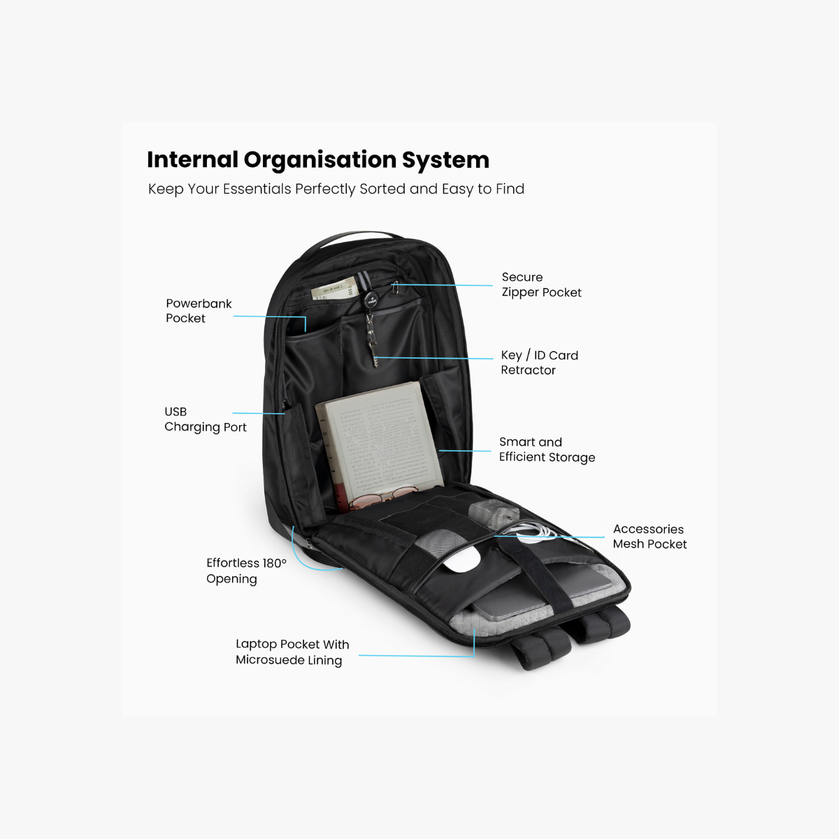 ✔ Multiple compartments for efficient organization of laptop and accessories