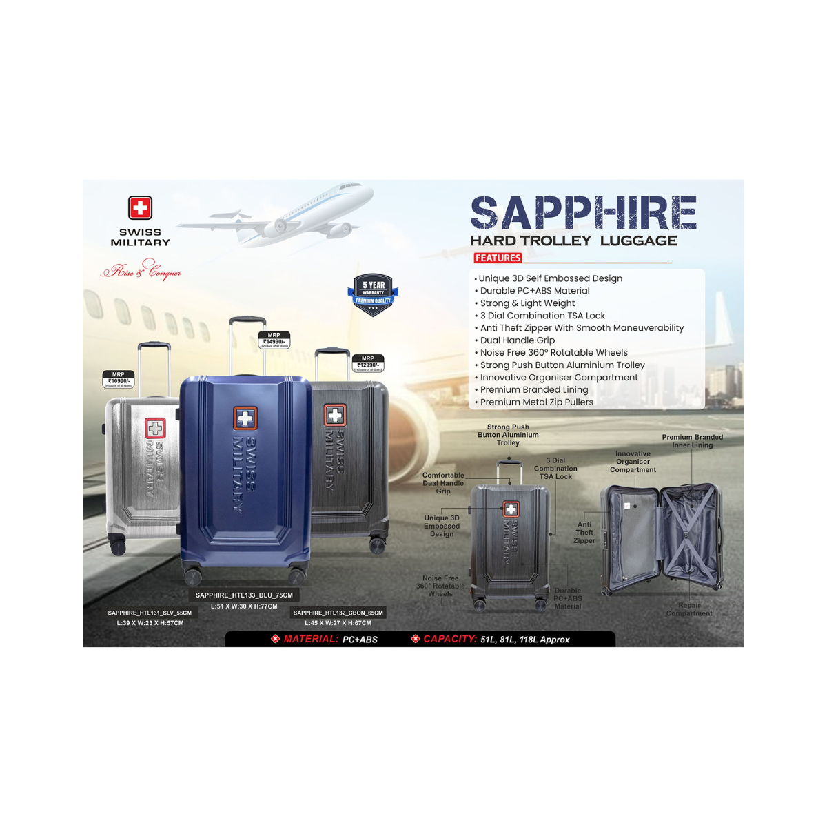 ✔ Sapphire Hard-Top Trolley Luggage designed for durability and modern travel