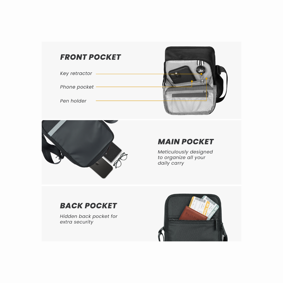 ✔ Functional and sleek crossbody bag with a compact vertical design