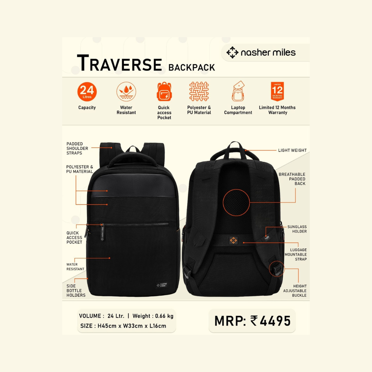 ✔ Capacity: 24L spacious design for daily essentials