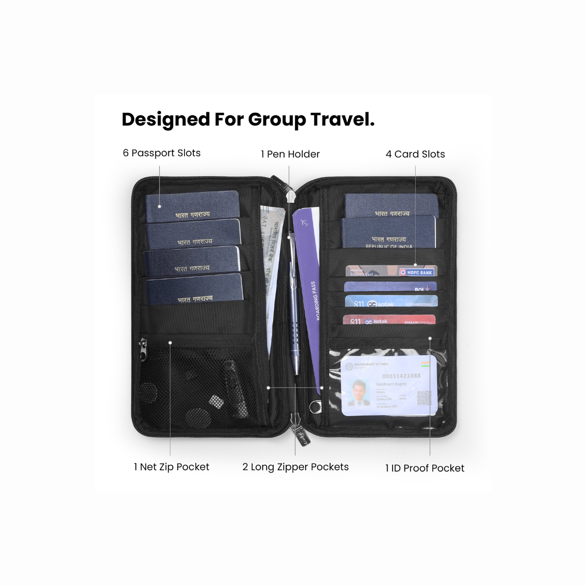✔ Multiple slots for cards, cash, and documents in one place