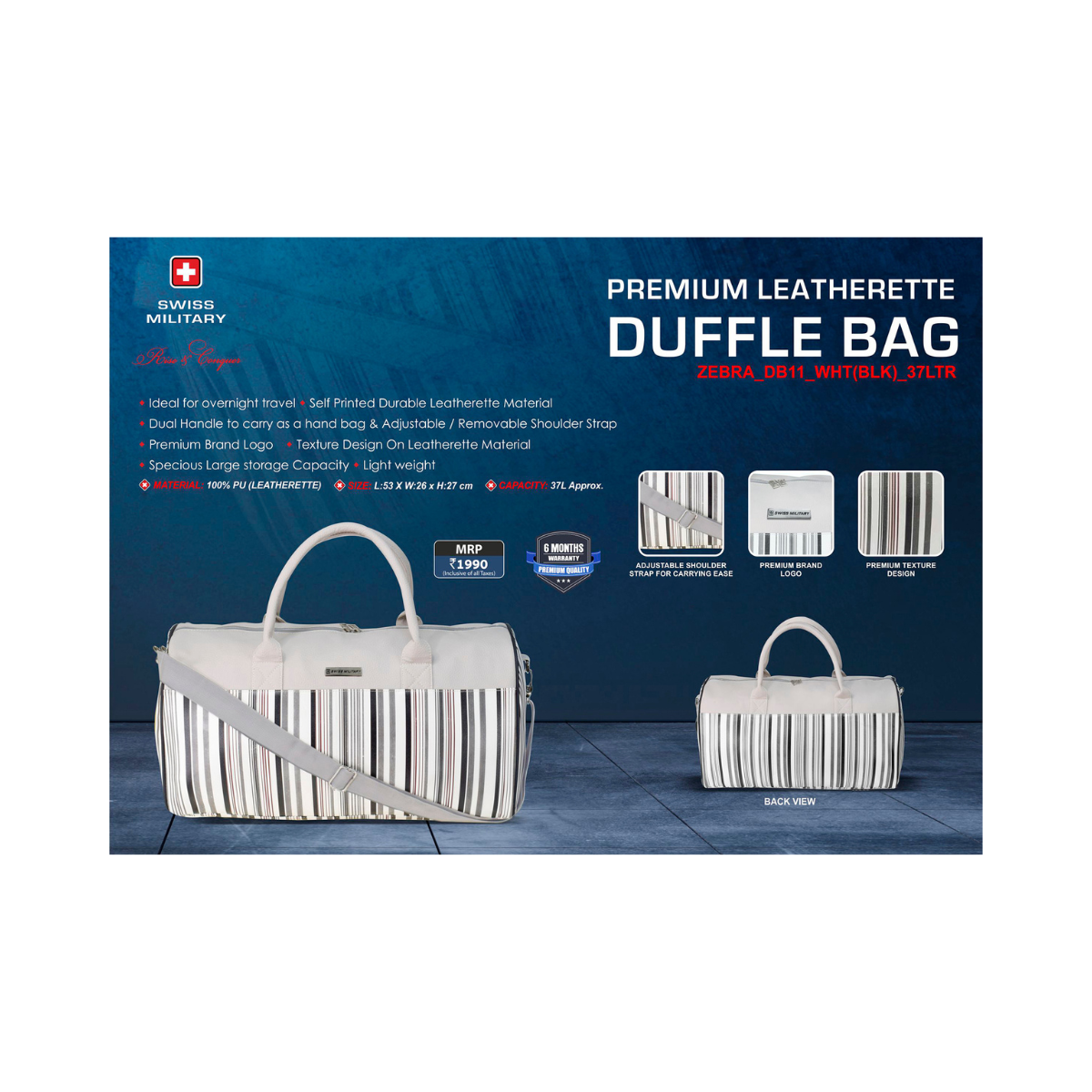 Zebra Leatherette Duffel Bag – Stylish Striped Travel & Gym Bag, White/Black